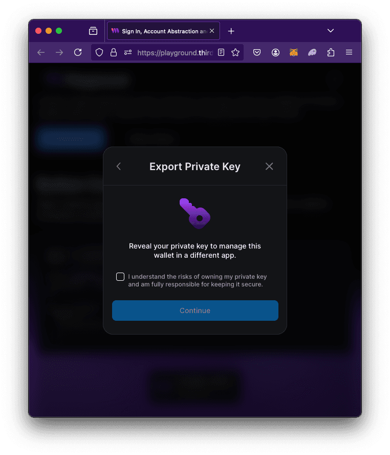 Learn how to export the private key for a thirdweb wallet using the Connect modal.